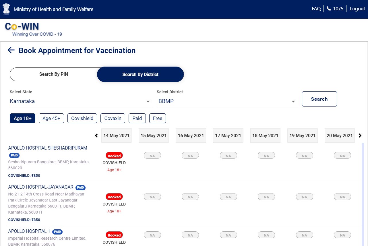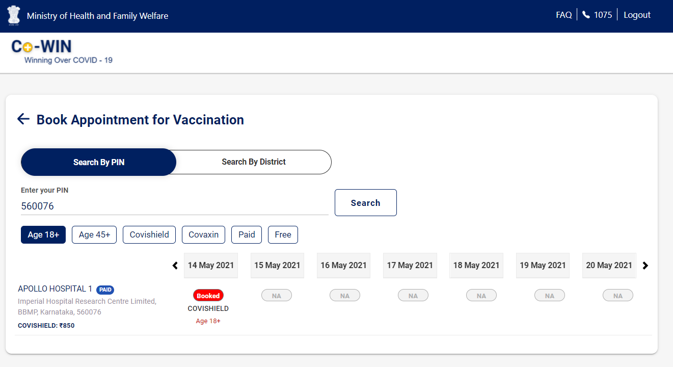 Remember, registration does not mean you can walk in to a hospital and get vaccinated. You need to register first and if for your age group, walk in vaccination is not allowed, you will have to book slot first.