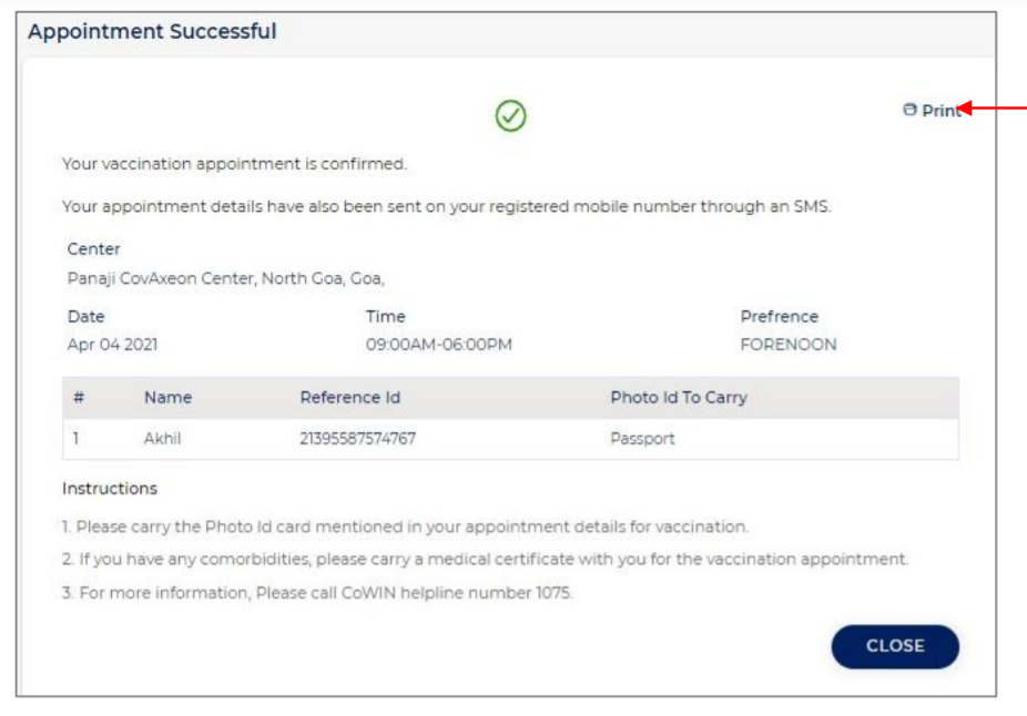Once an appointment is scheduled, you will receive the details of the vaccination centre, date and time slot chosen for appointment in an SMS sent to your registered mobile number. You can also download the appointment slip and print it or keep it on your smart phone.